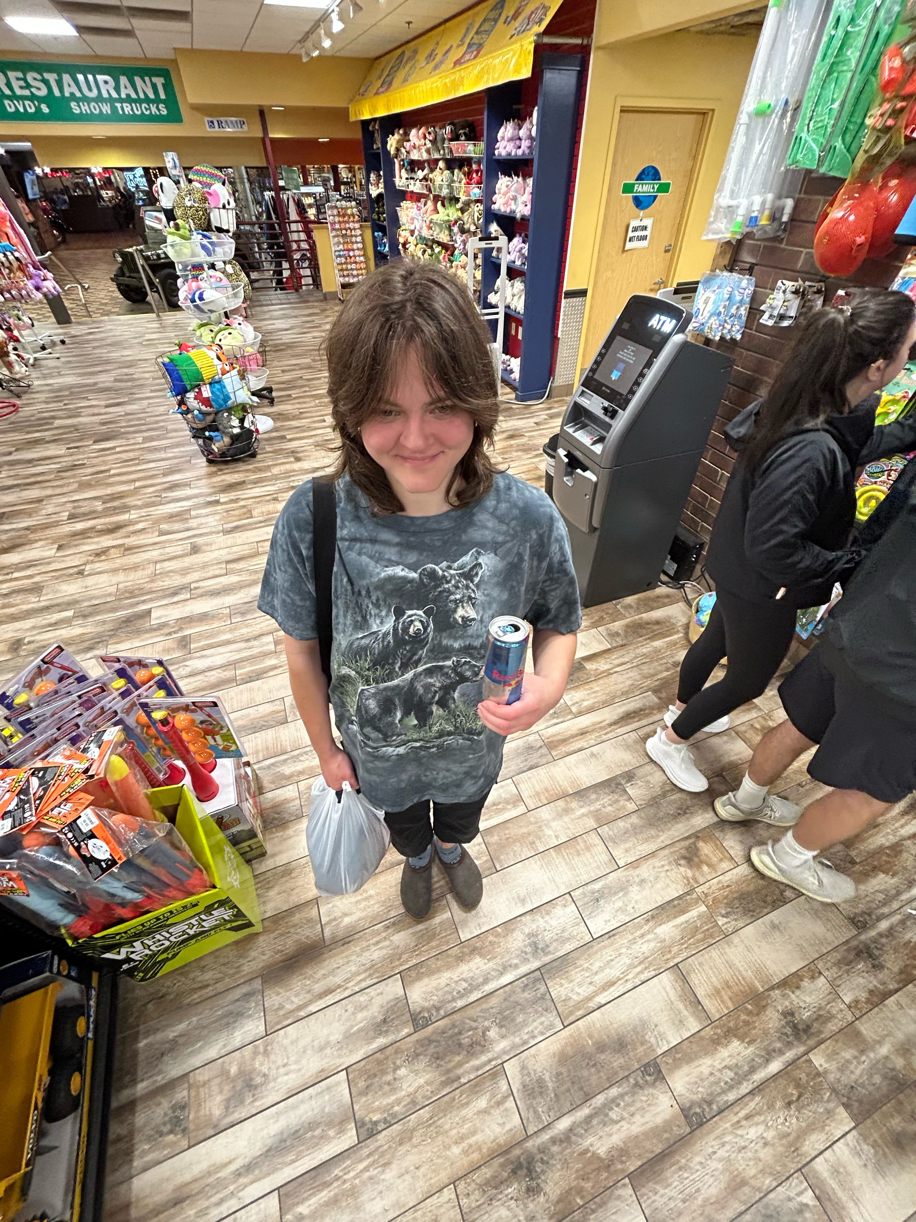 I’ve been looking for a “The Mountain” shirt for maybe a decade. Found on day 1 at “The World’s Largest Truck Stop” in Iowa. Photo featuring my driving Red Bull, my slippers that I just had to glue back together, and Jack’s .5 photography skills.